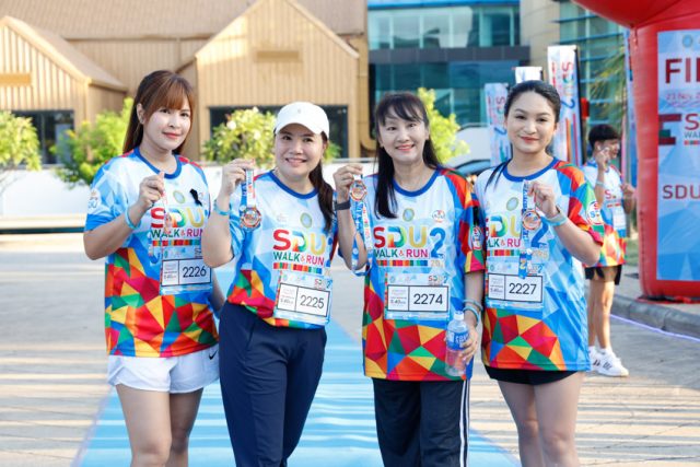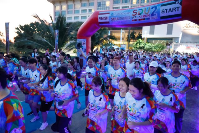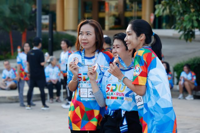 โครงการ “SDU WALK & RUN 2nd 2025” มีผู้ให้ความสนใจเข้าร่วมโครงการจำนวน 618 คน ประกอบด้วย บุคลากร และบุคคลทั่วไป 435 คน นักศึกษา จากกรุงเทพมหานคร วิทยาเขต และศูนย์การศึกษานครนายก ศูนย์ลำปาง ศูนย์หัวหัวหิน ศูนย์ตรัง รวม 183 คน ประกอบด้วยกิจกรรมหลัก ได้แก่ กิจกรรมที่ 1 เดิน-วิ่งเพื่อสุขภาพ ระยะทาง 5.4 กิโลเมตร กิจกรรมที่ 2 กิจกรรม “รวมใจภักดิ์ ปลูกตันไม้สืบสานพระราชปณิธาน แม่ของแผ่นดิน” ปลูกต้นไม้ จำนวน 300 ต้น ได้แก่ เฟื่องฟ้า มะฮอกกานี อินทนิล มะค่าโมง ตะแบก ยางนา และกล้วย โดยมีจุดปลูก ณ ทางเข้าหอมขจรฟาร์ม และริมบึงรอบหอมขจรฟาร์ม