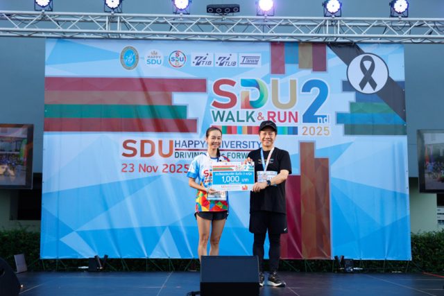 มหาวิทยาลัยสวนดุสิต มุ่งเน้นการพัฒนาคุณภาพชีวิตที่ดีของบุคลากรและนักศึกษาให้สอดคล้องกับนโยบาย Happy University เพื่อสร้างบรรยากาศแห่งความสุข ความสมดุลระหว่างการทำงาน การเรียนรู้ และสุขภาพกายใจที่ยั่งยืน วิทยาเขตสุพรรณบุรี จึงได้จัดโครงการ SDU WALK & RUN 2nd 2025 ที่จัดขึ้นเป็นครั้งที่ 2 ในระหว่างวันที่ 22-23 พฤศจิกายน 2568 ณ บริเวณโดยรอบวิทยาเขตสุพรรณบุรี โดยมีวัตถุประสงค์เพื่อส่งเสริมให้บุคลากรและนักศึกษามี สุขภาพที่ดี ทั้งด้านร่างกายและจิตใจตามแนวคิด Happy University สร้างความสัมพันธ์ที่ดีระหว่างบุคลากร นักศึกษา ศิษย์เก่า ศิษย์ปัจจุบัน และชุมชนรอบมหาวิทยาลัย ปลูกฝังวัฒนธรรมการออกกำลังกาย และการดูแลสุขภาพอย่างยั่งยืน รวมทั้งประชาสัมพันธ์ภาพลักษณ์ที่ดีของมหาวิทยาลัย ในการส่งเสริมสุขภาวะและการพัฒนาสังคมตามเป้าหมายการพัฒนาที่ยั่งยืน SDGs ที่ 3 Good Health and Well-Being สุขภาพดี และการส่งเสริมความเป็นอยู่ที่ดีสำหรับคนทุกวัย